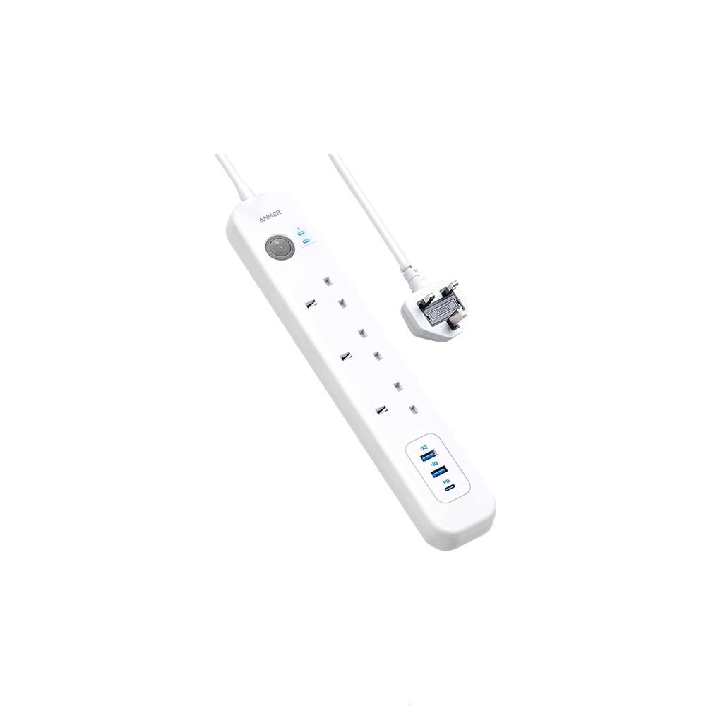 توصيلة انكر 3 منافذ طاقة ومنفذين USB ومنفذ PD بقوة 30 واط - ابيض