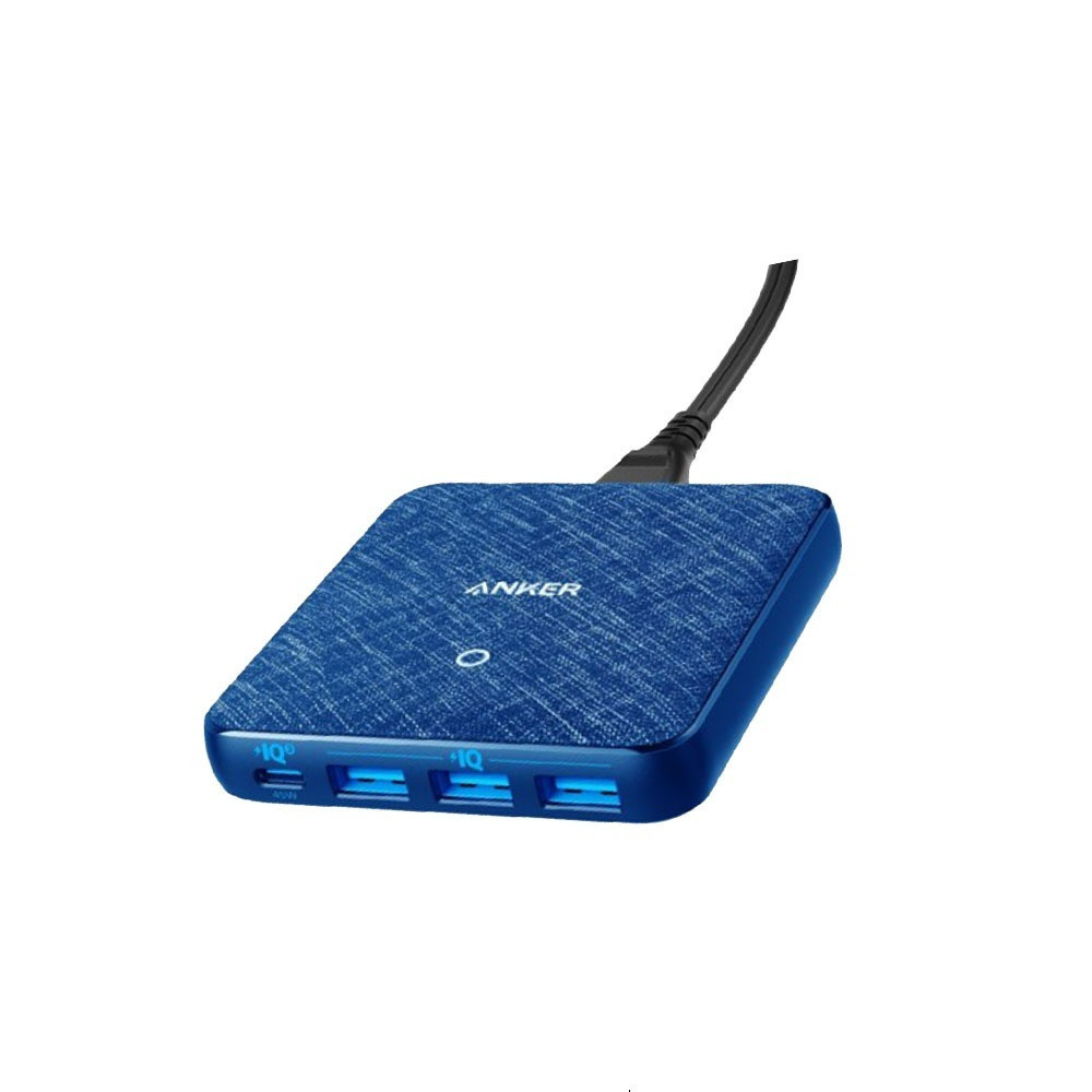 انكر منصة شحن مخرج PD و 3 مخارج سريعة بقوة 65 واط قماشي - ازرق
